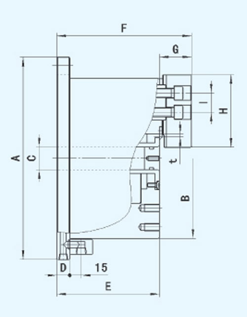 ☆油(氣)缸裝置在卡盤內(nèi)部,穩(wěn)定性好,重心低。