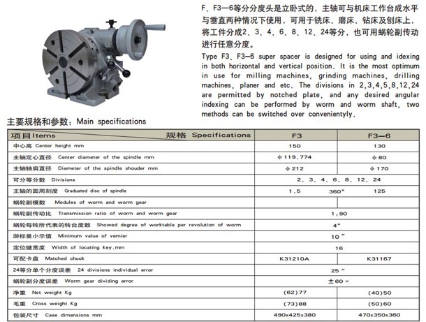F3、F3-6型立臥等分分度頭
